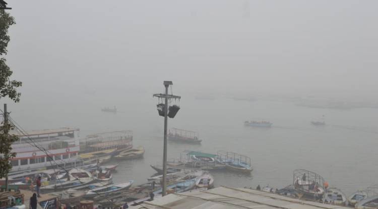 कोहरे की गिरफ्त में काशी: तापमान में 2 डिग्री गिरावट, 10 उड़ानें रद्द, दर्जनभर ट्रेनें लेट
