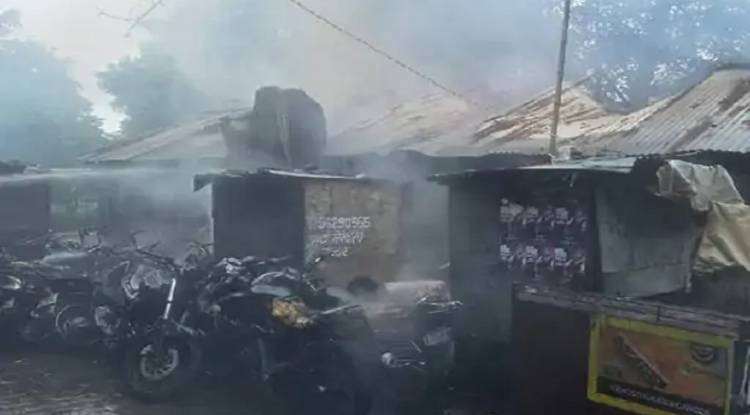 भीषण आग से आसपास की कई दुकानें जलीं, बिजली के शार्ट सर्किट से हादसा