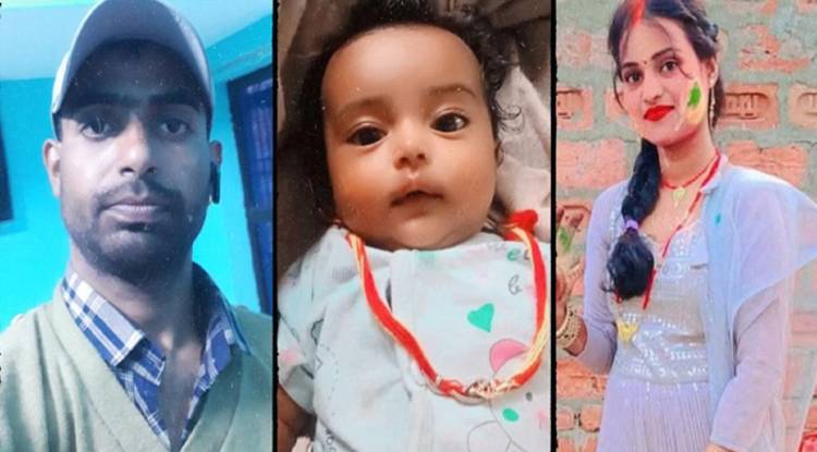हादसा दोपहर 12 बजे हुआ। बाइक सवार ओम प्रकाश (32) अपनी पत्नी ममता (30) और गोद में 5 महीने की बेटी तान्वी/अर्पिता के साथ रामनगर से टेंगरामोड़ चंदौली जा रहे थे। भीटी चौकी के पास ब्रेकर पर बाइक बेकाबू हो गई और वे डंपर के सामने जा गिरे।