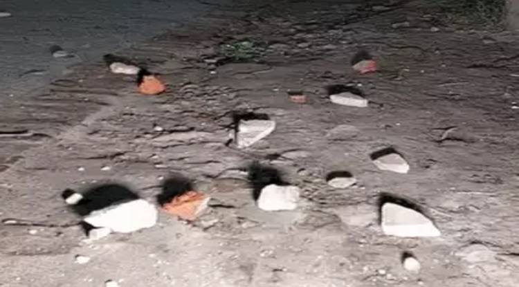 घटनास्थल पर बिखरे ईंट-पत्थर और टूटी CCTV