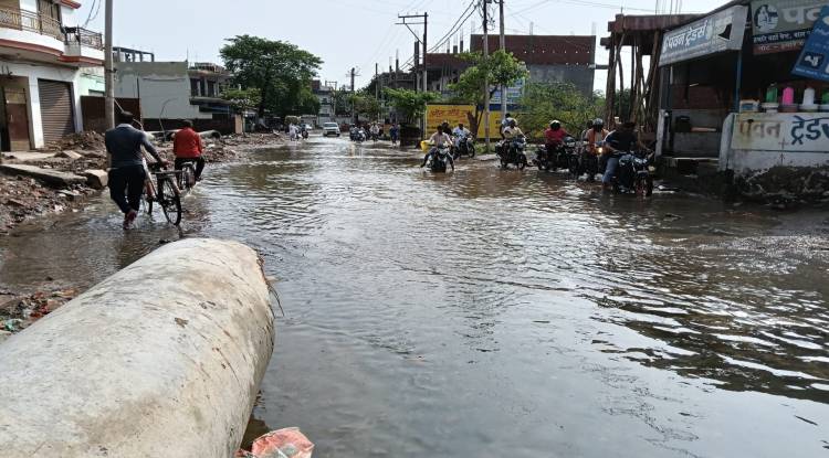 सड़क जलमग्न, अधिकारी मूकदर्शक और जनता बेबस
