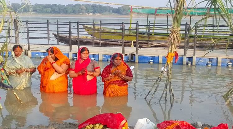 व्रती महिलाओं ने उदीयमान सूर्य को अर्घ्य देकर व्रत को किया पूर्ण, मांगी परिवार सुख शांति