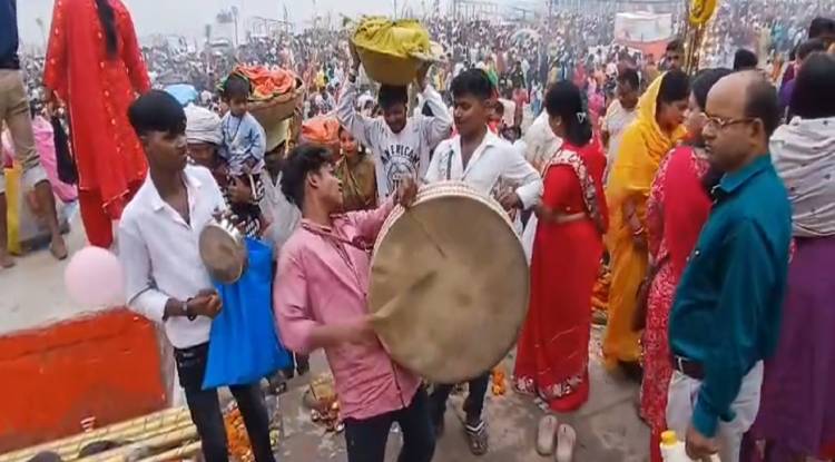 नमो घाट और राजघाट पर ढोल-मंजीरे की थाप और पारंपरिक लोकगीतों की गूंज के साथ माहौल पूरी तरह भक्तिमय हो गया। व्रती महिलाओं ने पारंपरिक वेशभूषा धारण कर सूर्यदेव से आरोग्यता और परिवार की समृद्धि की कामना की।