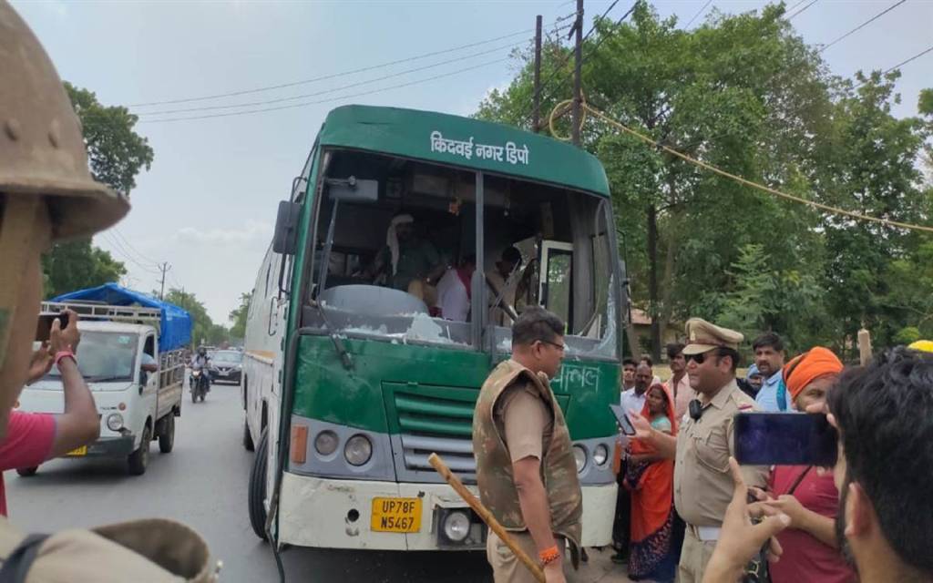 अग्निपथ योजना के विरोध में वाराणसी से कानपुर जा रही बस में की तोड़फोड़