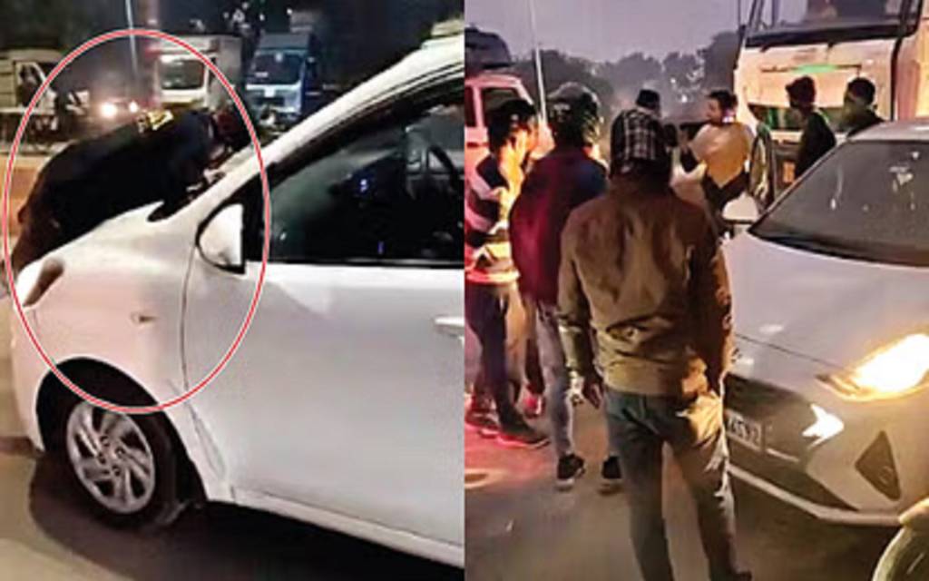 दौड़ती कार के बोनट पर पांच किलोमीटर तक लटका रहा पति, अंदर बैठी रही पत्नी, सामने आया हाईवे का हैरतअंगेज वीडियो