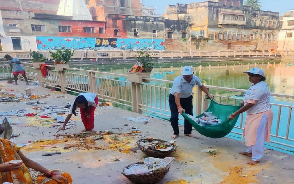 मातृ नवमी पर लक्ष्मी कुंड में बिखरी गंदगी को नमामि गंगे ने किया साफ