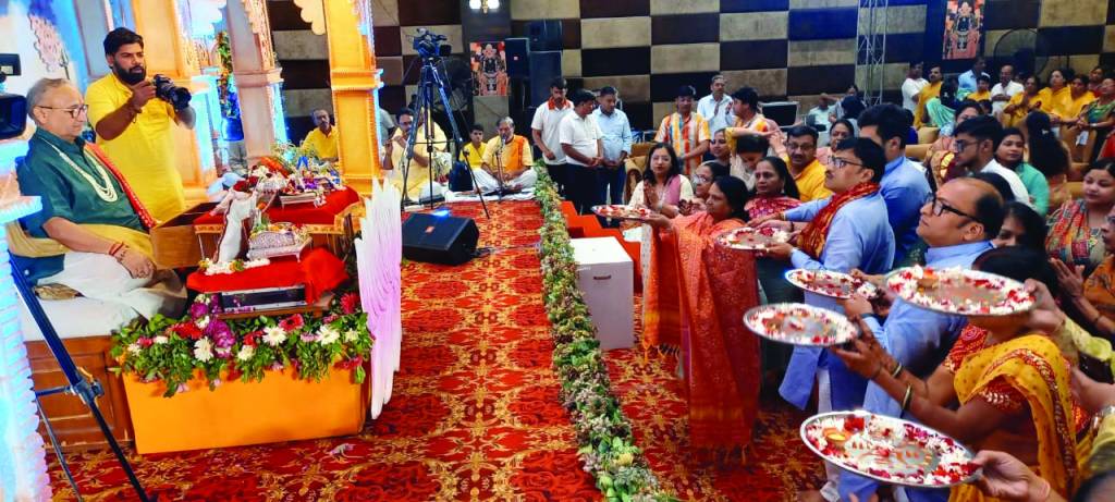 श्रीकाशी सत्संग सेवा समिति के तत्वावधान में गोलोकवासी परमेश्वर लाल धानुका की स्मृति में महमूरगंज स्थित शुभम लॉन में हो रही दस दिवसीय के चौथे दिन गुरुवार को पं. श्रीकांत शर्मा बालव्यास ने प्रभु श्रीराम जन्म के उपरांत की मनमोहक कथाओं का वर्णन करते हुए कहा कि राम के जन्म लेते ही पूरी अयोध्या उत्सव में डूब गई, हर कोई बस अपने प्रभु की एक झलक देखने मात्र को आतुर हो गया। गुरु वशिष्ठ जब मंत्रोच्चार से राम को आशीर्वाद देने पहुँचे तो प्रभु के सौंदर्य को देख इतना मुग्ध हो गए कि मंत्र पढ़ना ही भूल गए। उन्होंने कहा कि राम सिर्फ अयोध्या के राजा नही है वें जन जन के दुखों को दूर करने वाले महाराज है। जिनके हृदय में प्रभु के लिए प्रेम भरा है, प्रभु के प्रति भक्ति है, अनुराग है तो सारा जीवन सत्यनिष्ठा से व्यतीत हो जायेगा, इसमें कोई संशय नही है।