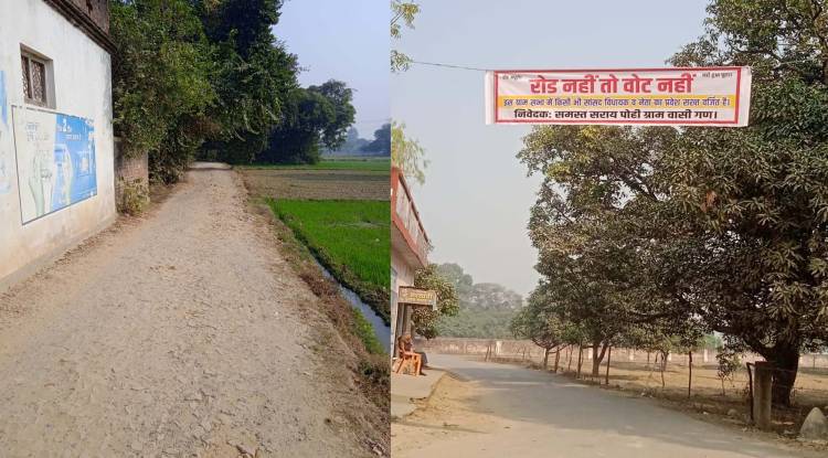 सरायपोही की जर्जर सड़क को लेकर ग्रामीणों का आक्रोश, लगाए ‘रोड नहीं तो वोट नहीं’ के बैनर