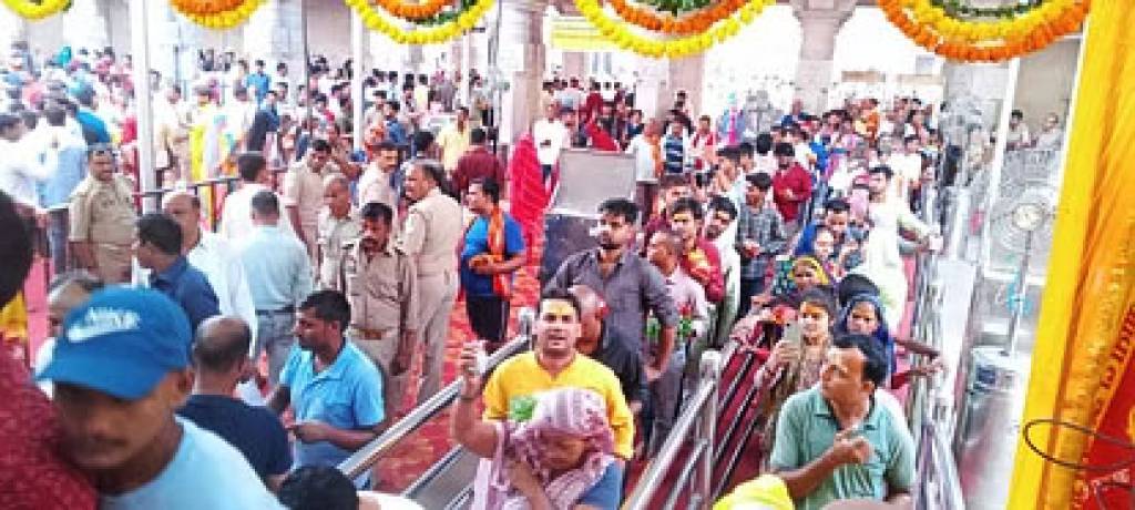मिर्जापुर। शारदीय नवरात्र के प्रथम दिन मां विंध्यवासिनी के दरबार में हजारों भक्तों ने मत्था टेका। बृहस्पतिवार की भोर भव्य मंगला आरती के बाद दर्शन पूजन का दौर शुरू हो गया। मेला क्षेत्र में देर रात से ही श्रद्धालुओं के आने का सिलसिला शुरू हो गया था। आधी रात के बाद से गलियों में भक्तों की लंबी कतार लग गई। मेले की तैयारी को बेहतर बनाने में जिला प्रशासन जुटा रहा। सुरक्षा कर्मी संपूर्ण मेला क्षेत्र में चक्रमण करती रही। देवी दरबार में आने वाली भक्तों की भारी भीड़ को देखते हुए सुरक्षा के चौकस इंतजाम किए गए हैं। विंध्याचल दरबार में मंगला आरती के बाद दर्शन पूजन का सिलसिला शुरू हुआ जो जारी है। भक्तों की भारी भीड़ मां के दरबार में पहुंच रही है। श्रद्धालु मत्था टेककर सुख-समृद्धि की कामना कर रहे हैं। मां विंध्यवासिनी माता मंदिर के परिक्रमा पथ परकोटा की छत पर साधक अनुष्ठान में तल्लीन रहे तो मुंडन संस्कार भी होता रहा। माला-फूल, नारियल-चुनरी और प्रसाद लिए विंध्यधाम में पहुंचने के बाद श्रद्धाभाव से भक्तों ने शीश झुकाया।
